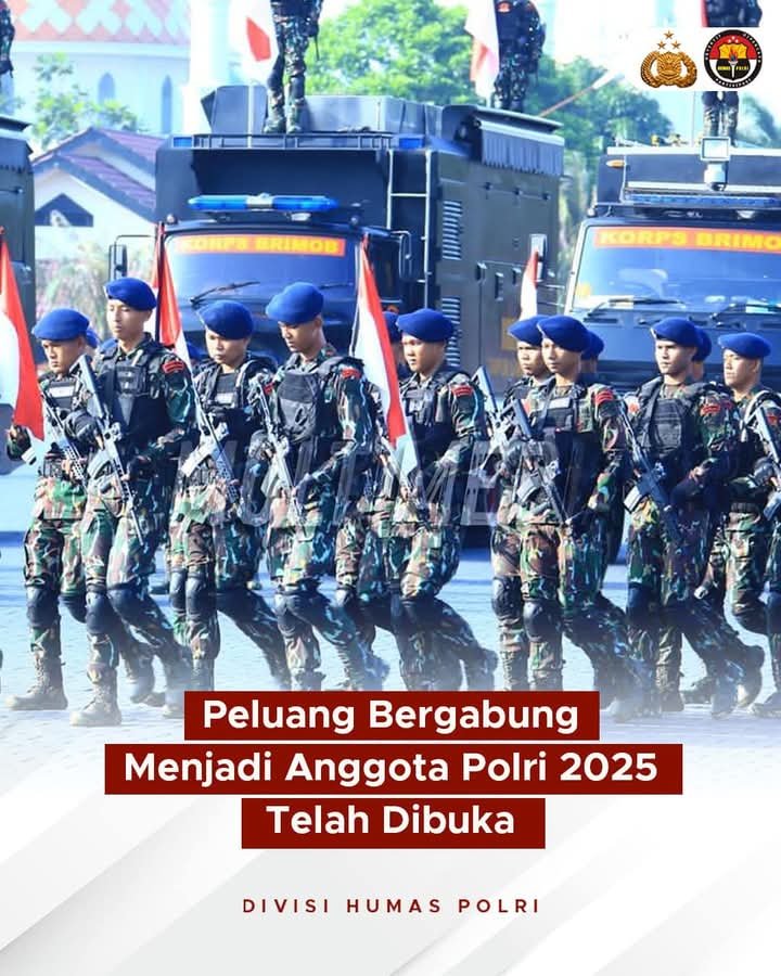 Jakarta – Kepolisian Republik Indonesia (Polri) kembali membuka penerimaan anggota baru untuk Tahun Anggaran 2025. Berdasarkan informasi yang diumumkan melalui halaman Facebook Divisi Humas Polri, pendaftaran dimulai pada 5 Februari hingga 6 Maret 2025 dan mencakup jalur Akademi Kepolisian (Akpol), Bintara, serta Tamtama .