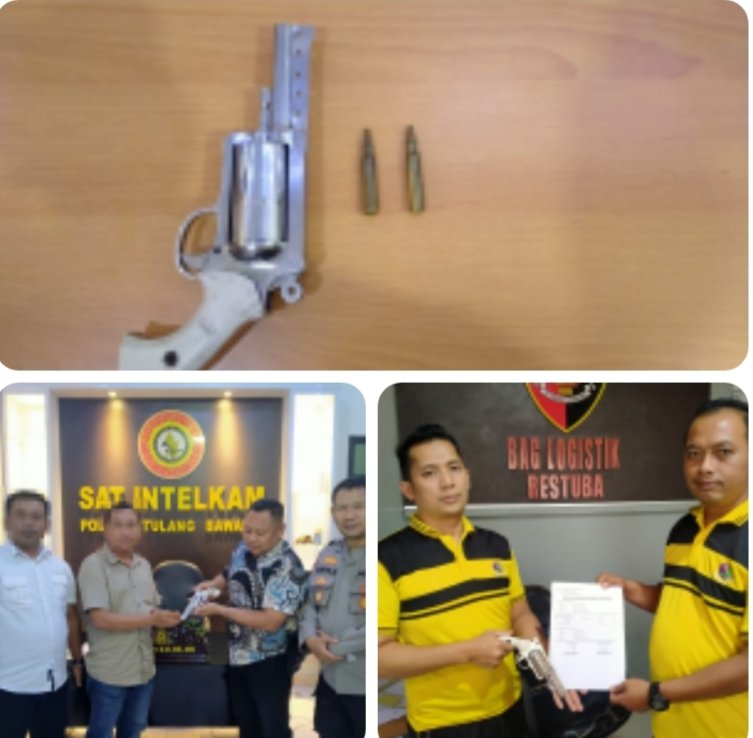 Tulang Bawang – Satuan Intelkam (Sat Intel) Polres Tulang Bawang, Polda Lampung, menerima penyerahan senjata api (senpi) ilegal jenis revolver beserta amunisi aktif dari masyarakat yang ada di wilayah hukumnya sebagai bentuk kesadaran dan ketaatan akan hukum yang berlaku.