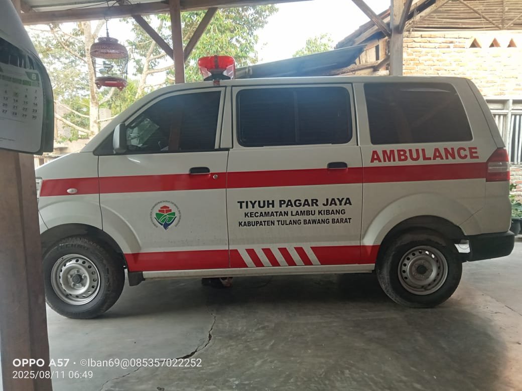 Pemerintah Tiyuh Pagar Jaya, Kecamatan Lambu Kibang, Kabupaten Tulang Bawang Barat, menghadirkan layanan ambulans gratis untuk masyarakat. Program ini dibiayai melalui Dana Desa tahun anggaran 2025 dengan nilai pengadaan sebesar Rp229 juta.